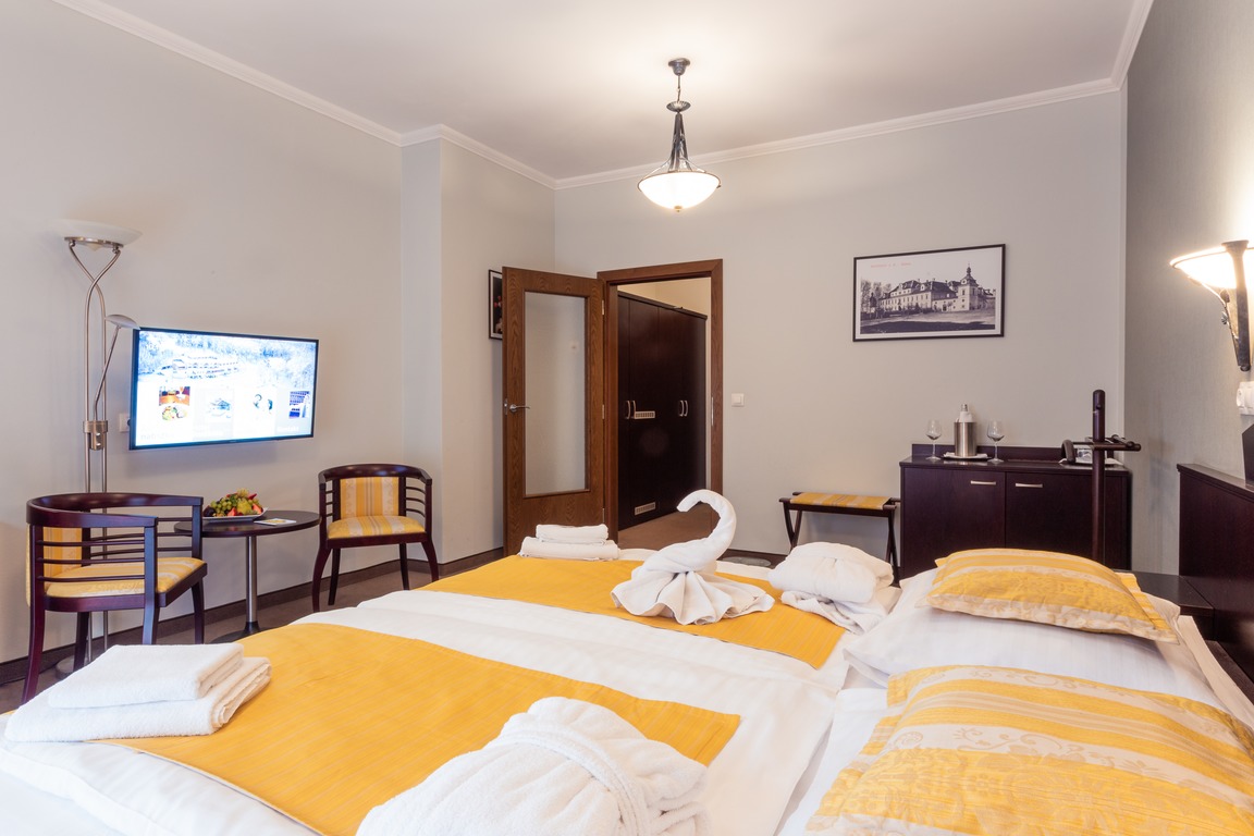 Total capacity: 100 ( including extra beds 123 )Room equipmentInternet Wi-Fi, Telephone, Television, Mini-bar, Safe, Baby cot, Extra bed